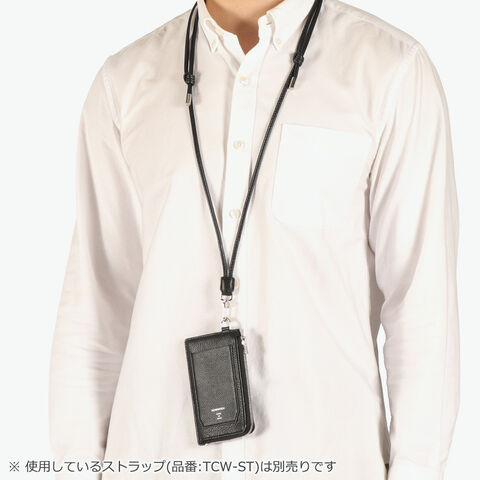 柔らかな革が映す上質感 HERGOPOCHの使用するレザーで最もソフトなシュリンクレザーを使用した『TC』シリーズのカードホルダー。折りたたんだ紙幣や小銭も収納でき、ミニ財布としても活躍するアイテムです。さらに、本体のDカンに別売りのストラップ(TCW-ST)を装着することで、首掛けや斜めがけも可能。アクセサリー感覚でお持ちいただけます。 |
