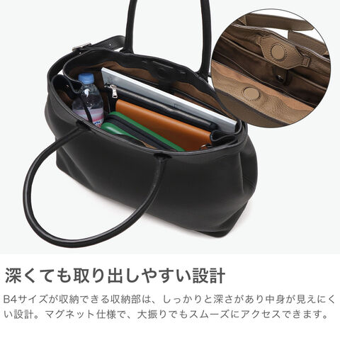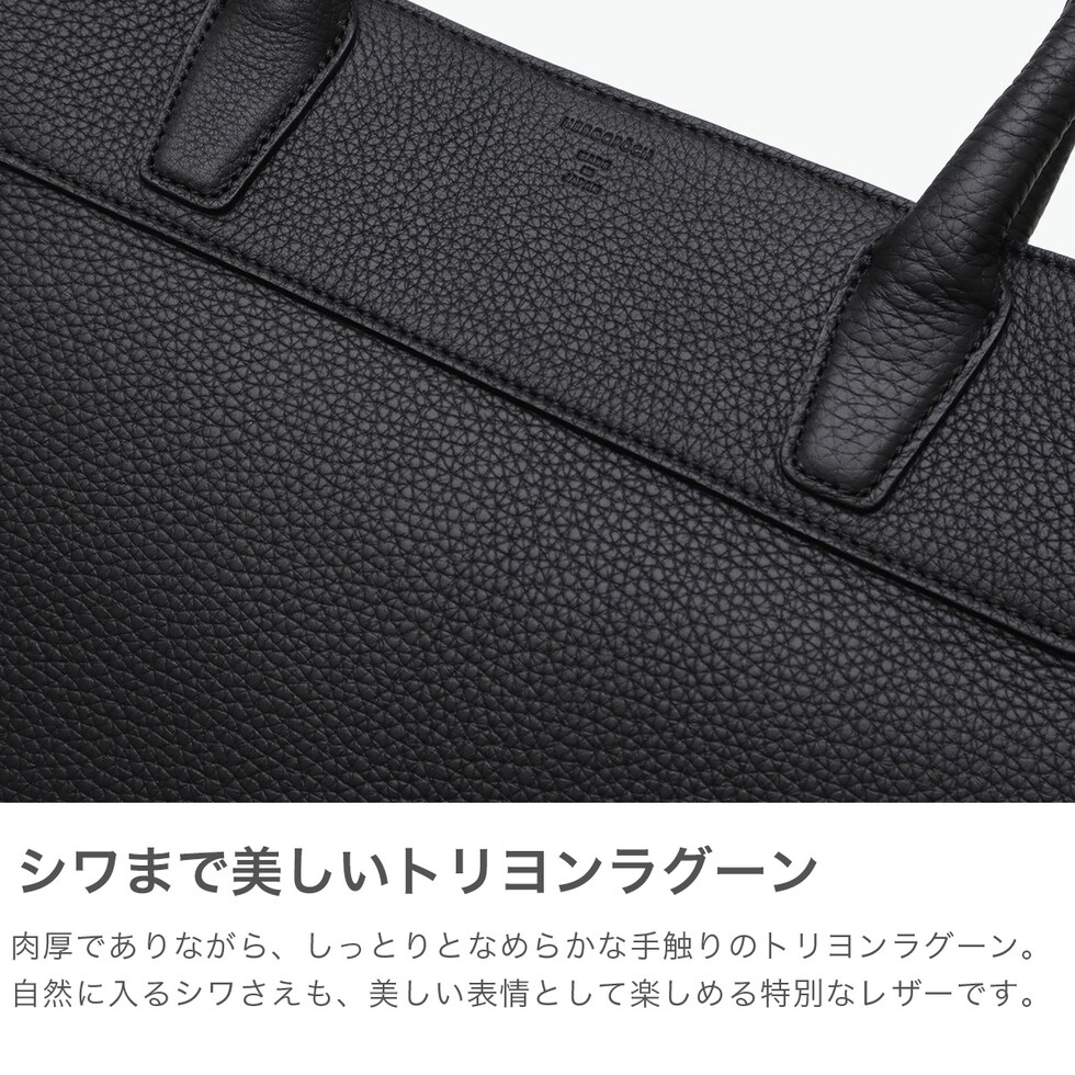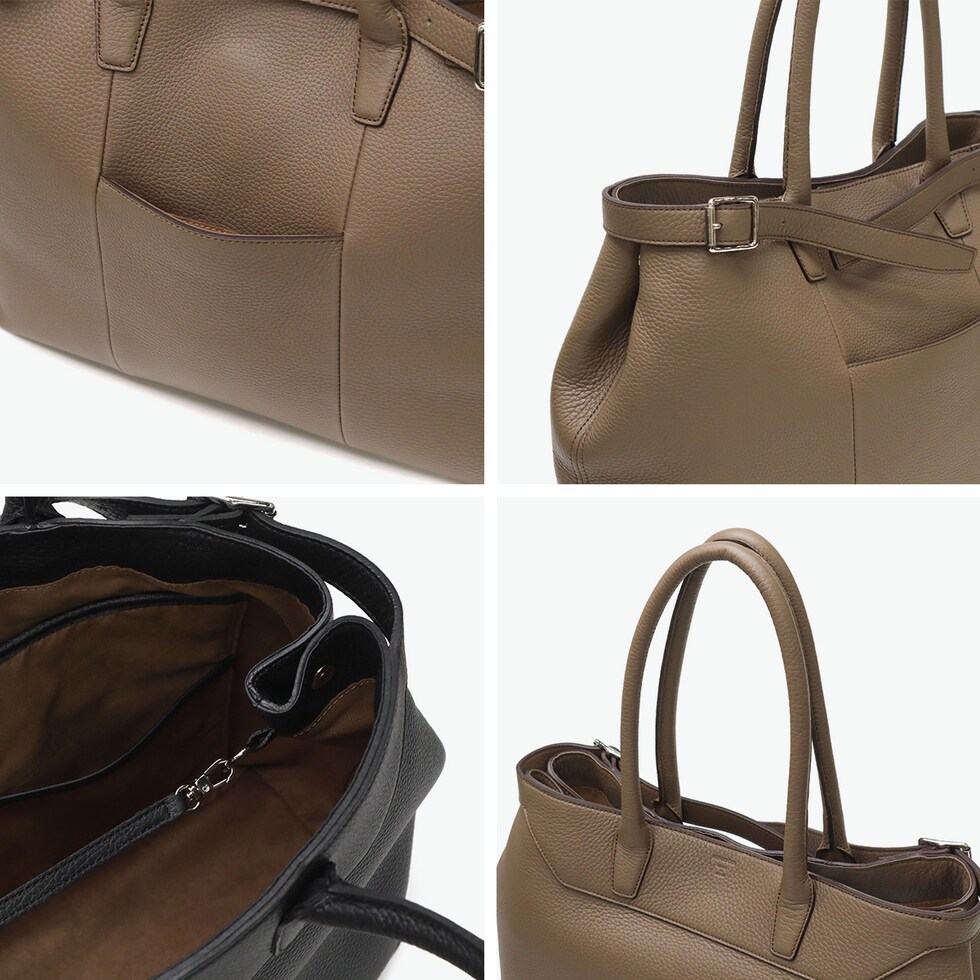 上品なレザートート フランスの老舗タンナーのシュリンクレザー“トリヨンラグーン”を使用した『TL』シリーズのトートバッグ。ふっくらとしたシボの表情と、しなやかな手触りを最大限引き出すため、接ぎを抑えたシンプルで美しいデザインに仕上げました。洗練した佇まいは、ビジネスにもカジュアルスタイルにも馴染みます。 |