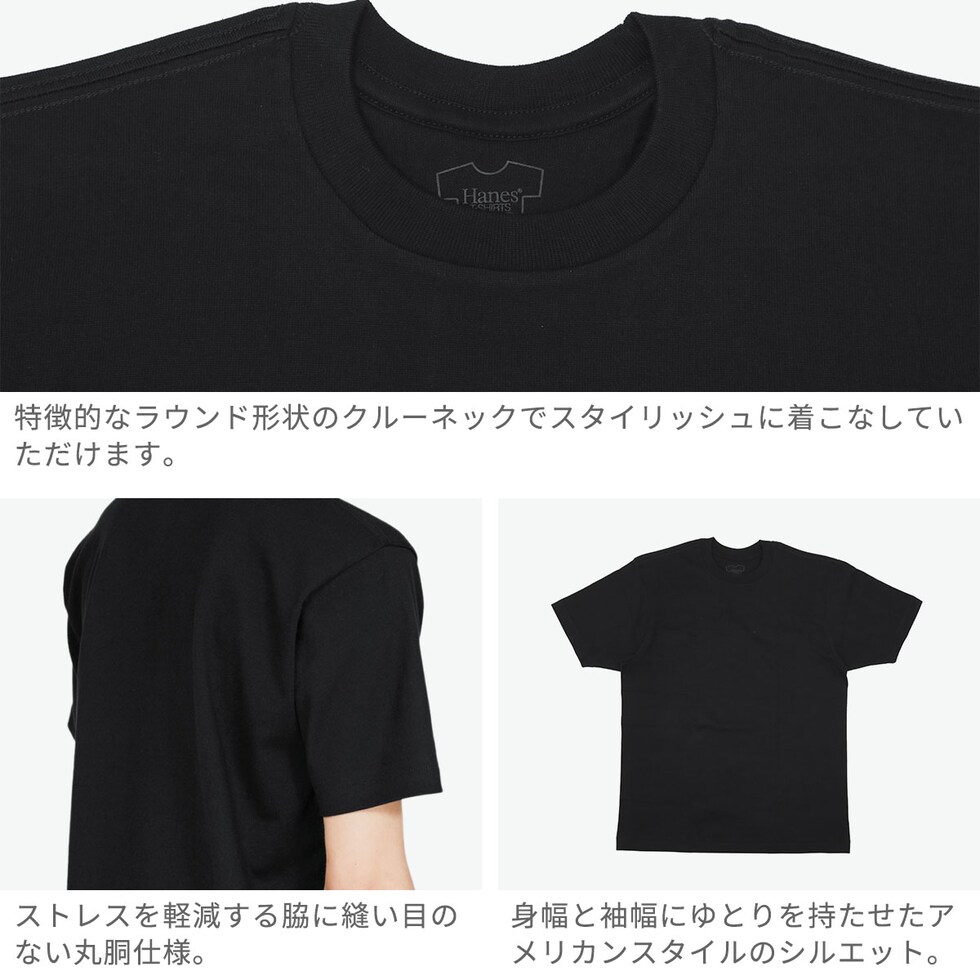 【メール便】 ヘインズ Tシャツ メンズ レディース 無地 ブランド Hanes 半袖 厚手 綿 綿100% 黒 ブラック クルーネック トップス オールシーズン THE BEST OF T-SHIRTS クルーネックTシャツ HM1-B201