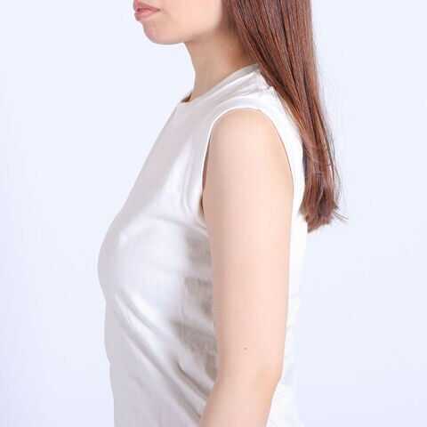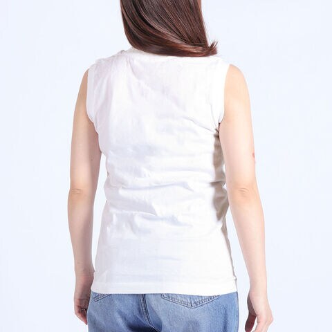 | 心地良さを追求した スリーブレスTシャツ 「日本人の心地良さのために」をコンセプトにした、Hanesを象徴する『Japan Fit for HER』の2枚組スリーブレスTシャツです。緩やかなネックラインと、日本人女性の体形に合わせたシルエットを追求しました。胴周りを一枚の布で仕上げた丸胴仕様。脇部分に縫製がないので着心地が良く、スッキリとした印象を演出できます。素材には、透けにくいしっかりとした5.3ozの生地を採用し、インナーとしてはもちろん1枚でも着用できます。 |