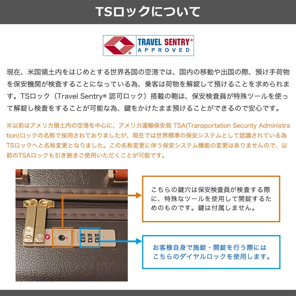 | <購入前にご確認ください> ・メーカーの意向により、付属品の収納袋や箱、製品の仕様やデザインは予告なく変更となる場合がございます。 ・下記による返品・交換はお受けすることができませんので、予めご了承ください。 └ 製品の性質上による細かいキズや塗装ムラ、気泡などがある場合。 └ 配送用の段ボールにキズ、汚れ、破損がある場合。 ・エキスパンダブル機能付きの製品は、マチ拡張時の3辺の和が機内持ち込みサイズ、預け入れ無料サイズを超える場合がございます。また、航空会社や飛行機の機種などによって規定が異なりますので、予めご確認の上お求めください。 ※機内持ち込みサイズ目安表はこちら ・摩擦・水濡れ・日焼けなどにより、色落ち・色褪せが生じる場合があります。 また、製品と衣類の接触により、相互に色移りする場合がございます。 ・柄の位置やカラーバランスなどは、生地の裁断や製造過程、素材の特性により画像とは異なる場合がございます。商品をお選びすることはできませんので、予めご了承ください。 ・極力実物に近い色味を再現しておりますが、モニター等の条件により画面上と実物では色味が異なって見える場合がございます。 |