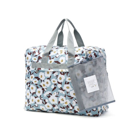 コンパクトに収納でき、荷物が増えた時のサブバッグにも便利なパッカブル式ボストンバッグ。折りたたんで内装ポケットと付属のチュールポーチのどちらにでも収納可能な仕様。スーツケースにセットアップすることができ走行時にバッグのふらつきを防ぎます。旅行やおでかけがもっと楽しくなるような、HaNTオリジナルの可愛いパターン生地は、スーツケースシリーズ「ココント」と連動した柄展開で一緒に使うのもおすすめです。