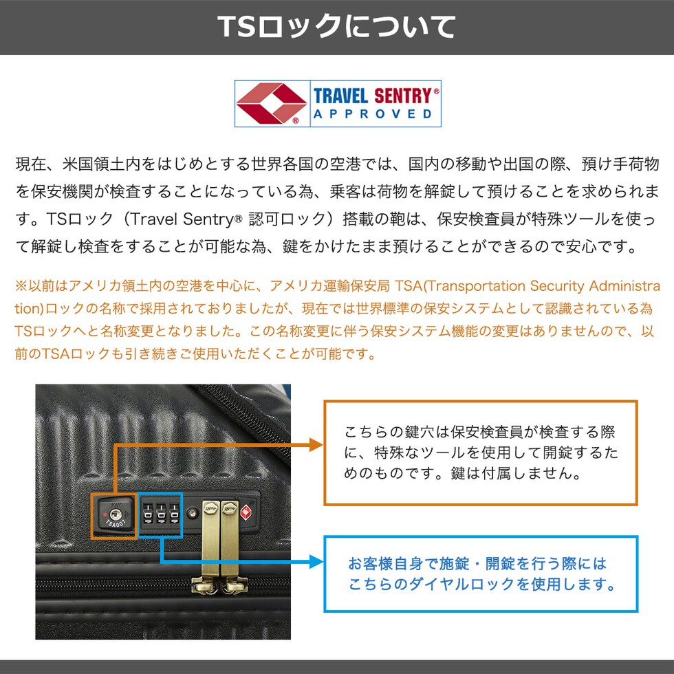 | <購入前にご確認ください> ・メーカーの意向により、付属品の収納袋や箱、製品の仕様やデザインは予告なく変更となる場合がございます。 ・下記による返品・交換はお受けすることができませんので、予めご了承ください。 └ 製品の性質上による細かいキズや塗装ムラ、気泡などがある場合。 └ 配送用の段ボールにキズ、汚れ、破損がある場合。 ・エキスパンダブル機能付きの製品は、マチ拡張時の3辺の和が機内持ち込みサイズ、預け入れ無料サイズを超える場合がございます。また、航空会社や飛行機の機種などによって規定が異なりますので、予めご確認の上お求めください。 ※機内持ち込みサイズ目安表はこちら ・摩擦・水濡れ・日焼けなどにより、色落ち・色褪せが生じる場合があります。 また、製品と衣類の接触により、相互に色移りする場合がございます。 ・柄の位置やカラーバランスなどは、生地の裁断や製造過程、素材の特性により画像とは異なる場合がございます。商品をお選びすることはできませんので、予めご了承ください。 ・極力実物に近い色味を再現しておりますが、モニター等の条件により画面上と実物では色味が異なって見える場合がございます。 |