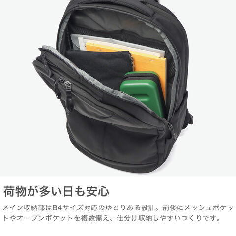 多様なシーンに対応 ブランド初となる、耐久性に優れたコーデュラバリスティックナイロンを採用し、都市から郊外までシームレスに活躍する『Tracks』の25L容量バックパック。「All roads travelled. -どの道も、これ一つで」をテーマに、使い勝手の優れた収納構造や仕様、スタイルを問わない洗練されたデザインを両立。シチュエーションやスタイルを問わず使える、汎用性の高いコレクションです。リュックストラップには、荷重をバランスよく分散するロードリフトストラップを使用し、長時間の使用でも快適さをキープします。機能と美しさを兼ね備えた頼れる相棒に仕上がっております。 |