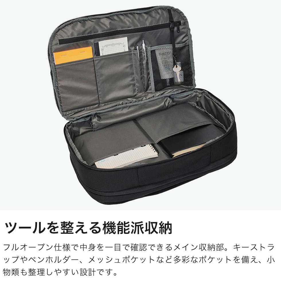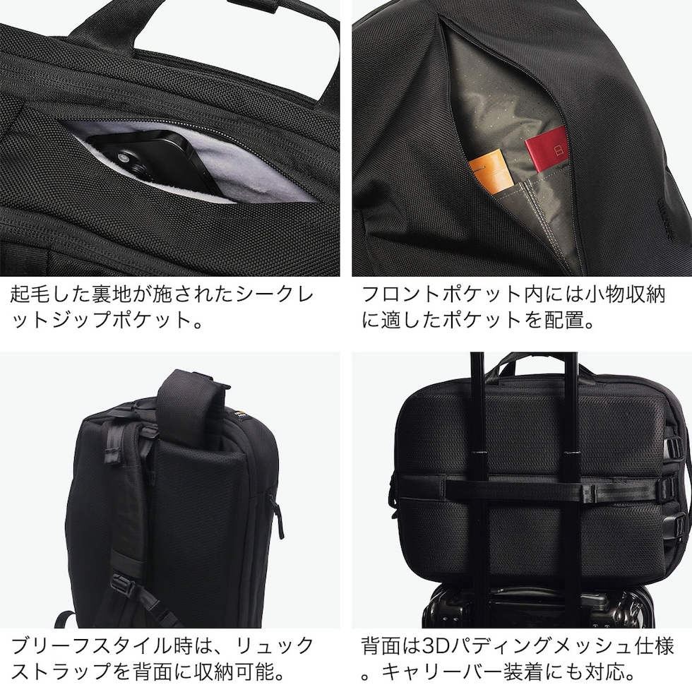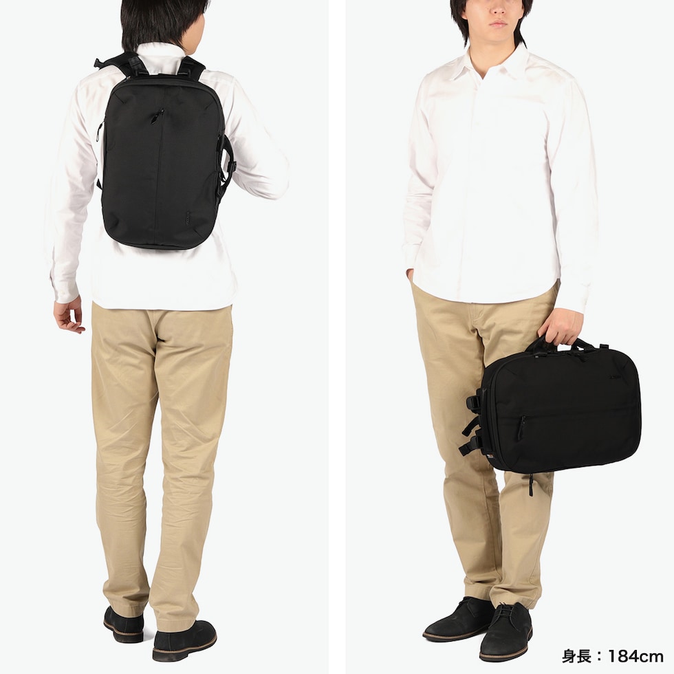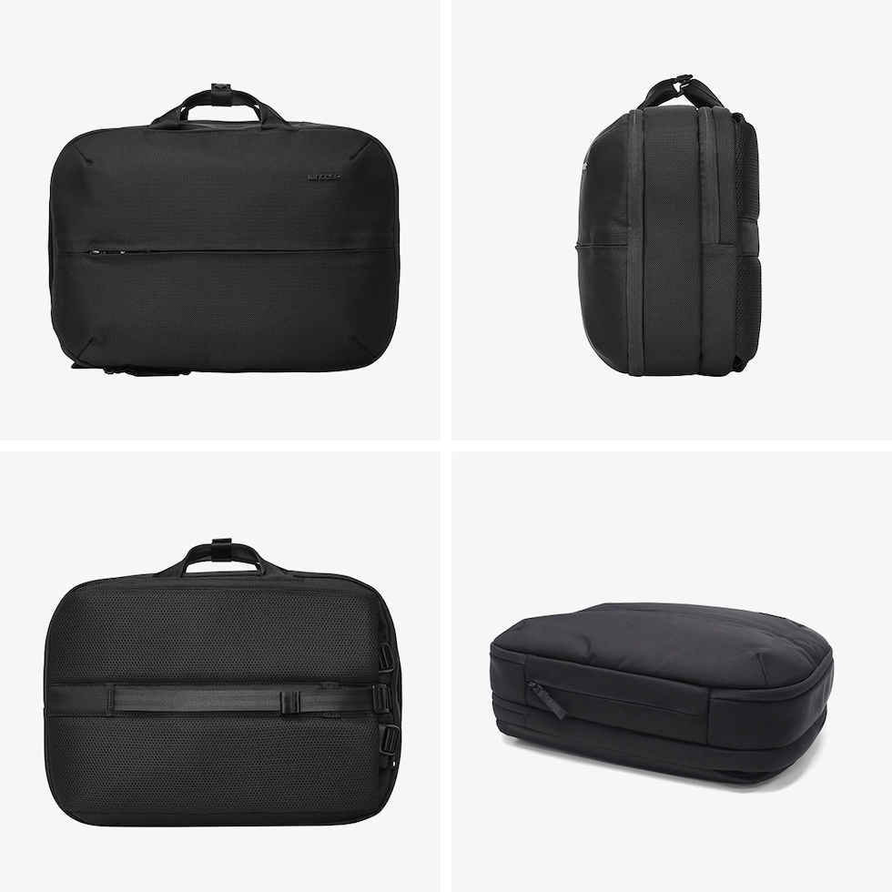 ブリーフとバックパック、2つのスタイルを自在に切り替えられるIncaseの2WAYブリーフ。1680DのCORDURAバリスティックナイロンを採用し、耐久性と軽量性を両立しました。PC・タブレット収納対応の独立テックコンパートメントや多彩なポケットを備え、通勤から出張までスマートに対応。キャリーオン機能も搭載し、都市を移動するビジネスシーンを快適にサポートします。