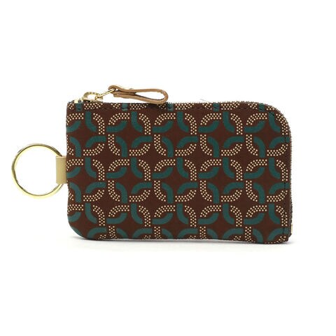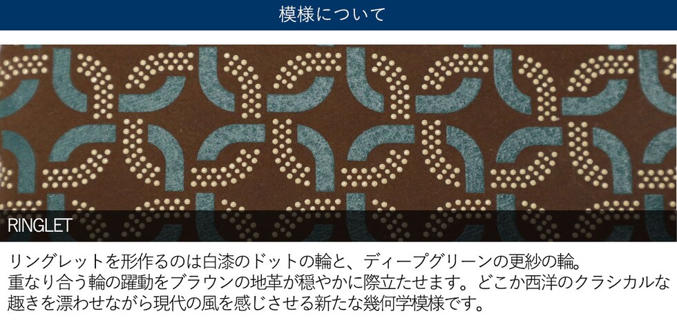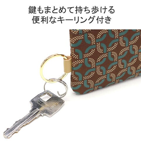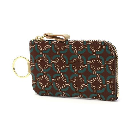 | 小さくても存在感抜群 和モダンなコインケース 白漆のドットで描かれた輪と、ディープグリーンの更紗模様が重なり合い、輪の躍動感をブランドならではの地革で際立たせた『Ringlet/リングレット』シリーズのキーリング付きコインケース。本体はL字ファスナーを採用し、大きく口が開くため中身が見やすく、裏地にあしらわれたターコイズブルーがさりげないアクセントになっています。手のひらに収まるコンパクトサイズで、小さなバッグにもすっきり収納でき、身軽にお出かけできるのも魅力です。 |