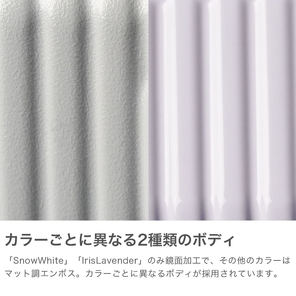 | カラー | MadBlack、SteelGray、CharcoalGray、Stone、MellowPink、PaleOrange、PaleGreen、MatteKhaki、SandBeige、CafeLatte、SunnyYellow、DeepSea、BlueShadow、ShadeBlue、LyonsBlue、PaleBlue、IrisLavender、Cocoa、SnowWhite |