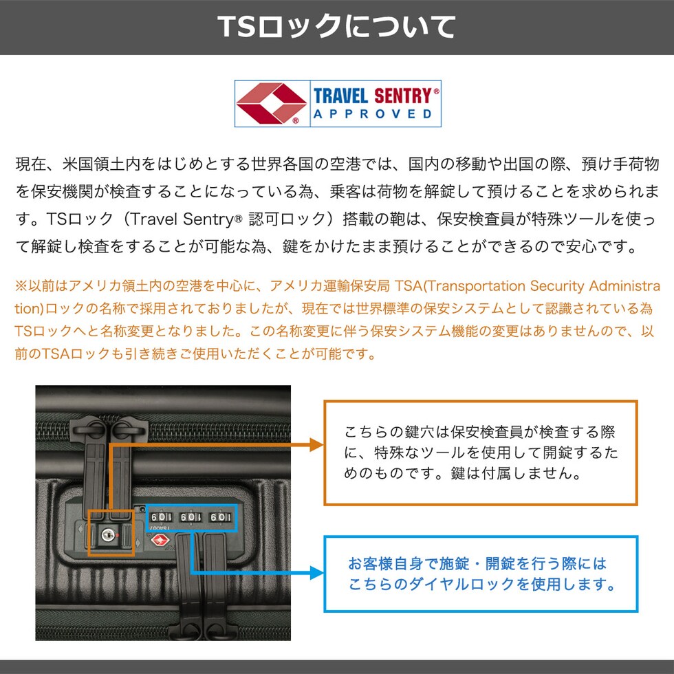 | <購入前にご確認ください> ・メーカーの意向により、付属品の収納袋や箱、製品の仕様やデザインは予告なく変更となる場合がございます。 ・下記による返品・交換はお受けすることができませんので、予めご了承ください。 └ 製品の性質上による細かいキズや塗装ムラ、気泡などがある場合。 └ 配送用の段ボールにキズ、汚れ、破損がある場合。 ・エキスパンダブル機能付きの製品は、マチ拡張時の3辺の和が機内持ち込みサイズ、預け入れ無料サイズを超える場合がございます。また、航空会社や飛行機の機種などによって規定が異なりますので、予めご確認の上お求めください。 ※機内持ち込みサイズ目安表はこちら ・摩擦・水濡れ・日焼けなどにより、色落ち・色褪せが生じる場合があります。 また、製品と衣類の接触により、相互に色移りする場合がございます。 ・柄の位置やカラーバランスなどは、生地の裁断や製造過程、素材の特性により画像とは異なる場合がございます。商品をお選びすることはできませんので、予めご了承ください。 ・極力実物に近い色味を再現しておりますが、モニター等の条件により画面上と実物では色味が異なって見える場合がございます。 |