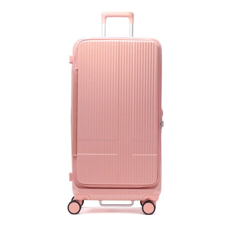 大容量キャリーケース 1週間以上の長期滞在や、複数人の荷物をまとめる際に活躍する、92L容量のキャリーケース。本体表面に鏡面加工を施したデザインがポイントです。前面にはワイドに開くフロントドアポケットがついており、奥にある荷物の取り出しも簡単。他にも、消音双輪キャスターや耐久性に優れたボディ、重い荷物の積み込みをサポートするボトムハンドルなど、旅を快適にする機能を搭載しています。 |