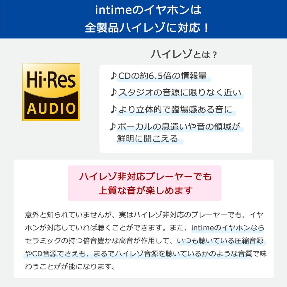 【メール便】【1年保証】 アンティーム イヤホン 有線 ハイレゾ対応 ハイブリッド型 intime 碧 NEO SORA 高音質 カナル型 3.5mmL型ステレオ 有線イヤホン オーツェイド O2aidのレビュー
