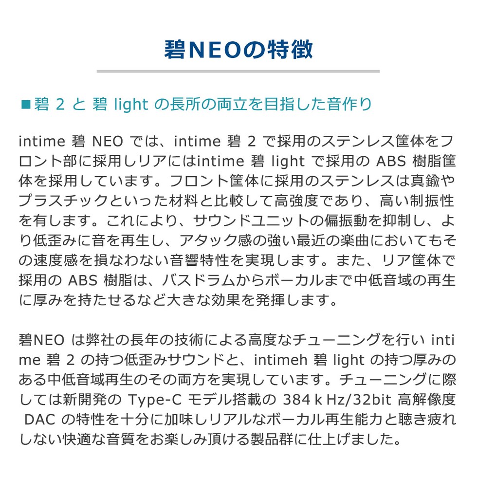 intimeのユニバーサルモデル「碧シリーズ」から、進化を経た「intime碧NEO」の3.5mmモデルが登場。