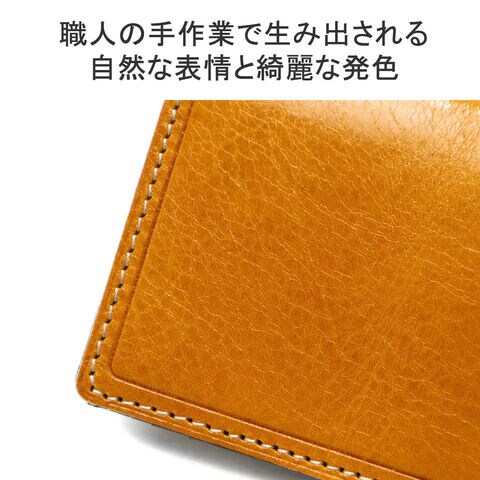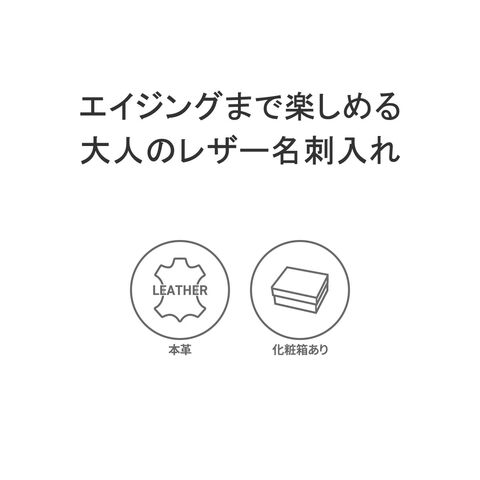 | エイジングまで楽しめる 大人のレザー名刺入れ 透明感のある光沢を放つイタリアンレザーを使用した名刺入れ。職人が手作業で染め上げることによって表れる自然なムラ感と、イタリアンレザーならではの美しい発色が魅力です。また、使い込んだ時に艶感が深まるエイジングを堪能することができ、大人の小物アイテムとして長く愛用して頂けます。 |