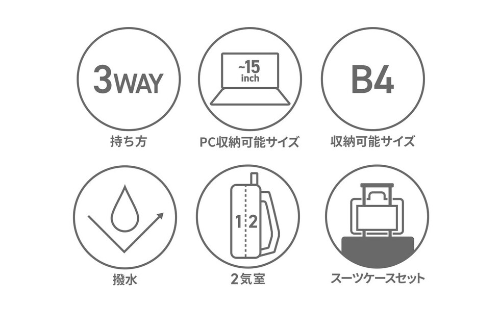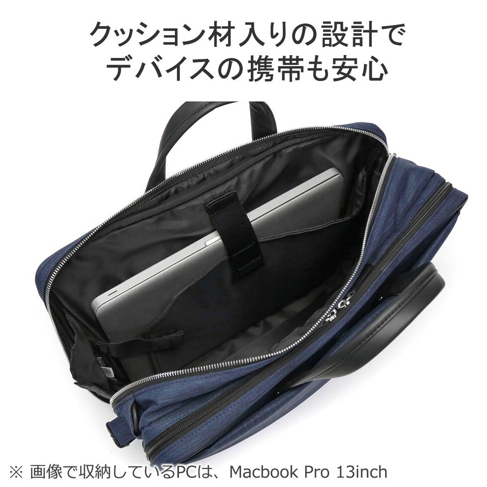 | 仕様 | <外側> マグネットポケット(L)×1 ジップポケット(M)×1 <前面収納> ジップポケット(L)×1 ポケット(L)×1 ポケット(M)×1 ポケット(S)×1 <背面収納> PC収納×1 <付属品> ショルダーストラップ×1 |