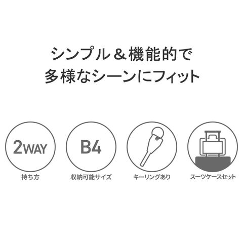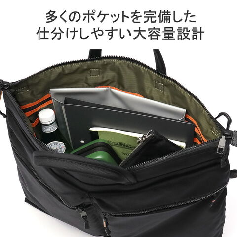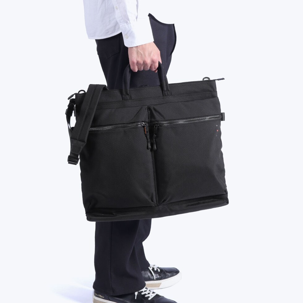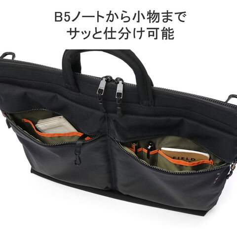 | 仕様 | <外側> ジップポケット(M)×1 └ 内蔵 ポケット(XS)×1 ペンホルダー×2 ジップポケット(M)×1 └ 内蔵 ポケット(S)×1 キーフック×1 ジップポケット(M)×1 <内側> メッシュジップポケット(L)×1 ジップポケット(M)×2 ポケット(M)×2 <付属品> ショルダーストラップ×1 カラビナ×1 |