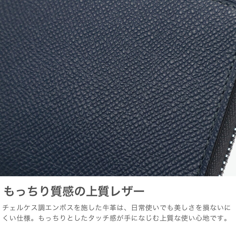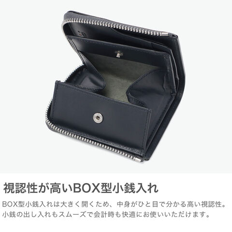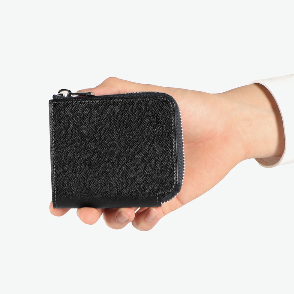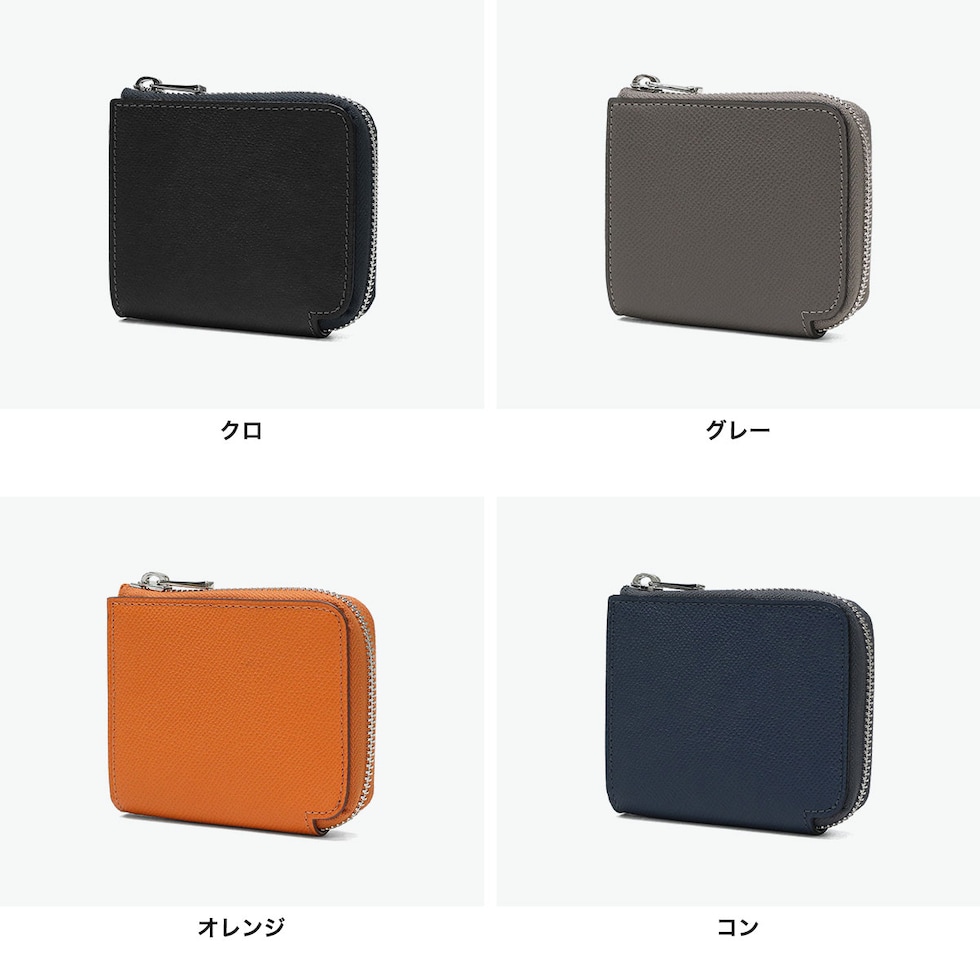 | 実用性を凝縮した コンパクト財布 コンパクトなL字ファスナータイプの二つ折り財布です。本体はチェルケス調のエンボス加工を施した牛革を使用し、傷が付きにくく、もっちりとしたタッチ感が魅力。ファスナー仕様で、鞄の中で開く心配のない安心設計です。内装は視認性の良いBOX型小銭入れを装備。さらに背面カードポケット付きで、ICカードなどの収納にも便利な仕様となっています。スマートさと実用性を兼ね備えたアイテムです。 |