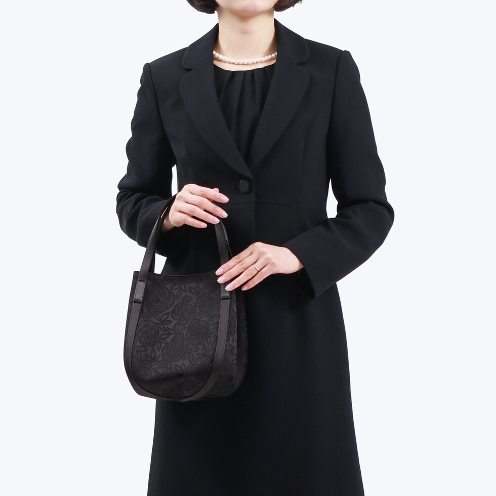岩佐 フォーマルバッグ IWASA イワサ パフィージャガードバッグ 手提げ ハンドバッグ 小さめ 黒 軽量 撥水 撥油 抗菌 防カビ バラ柄 お葬式 葬儀 法事 お墓参り 通夜 喪服 日本製 レディース IW60339