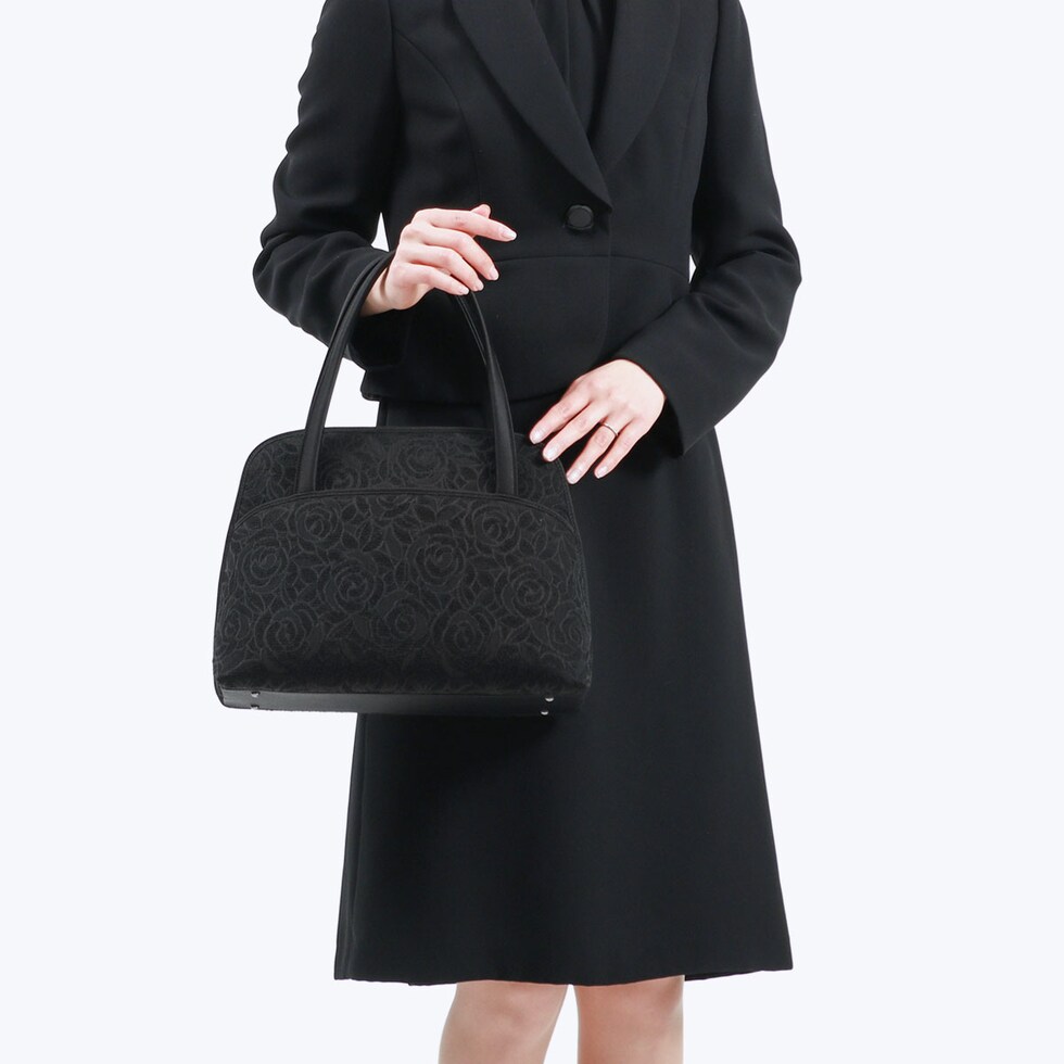 岩佐 フォーマルバッグ IWASA イワサ 米沢織立体バラ柄フォーマルバッグ ハンドバッグ かばん A5 黒 軽量 撥水 撥油 抗菌 米沢織 ファスナー バラ柄 冠婚葬祭 葬儀 法事 お墓参り 通夜 喪服 日本製 女性 レディース IW60403