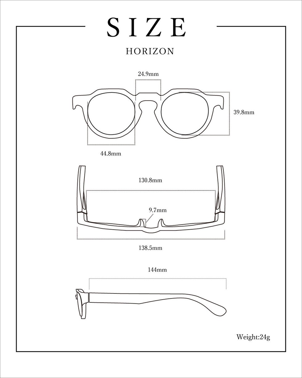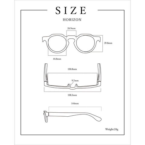 | サイズ | <レンズ> 幅:約 44.8(mm) 高さ:約 39.8(mm) <フレーム> ブリッジ幅:約 24.9(mm) 鼻あて高さ:約 9.7(mm) フレーム幅(内):約 130.8(mm) フレーム幅(外):約 138.5(mm) テンプル長:約 144(mm) ※商品により、若干の個体差が生じます。 |