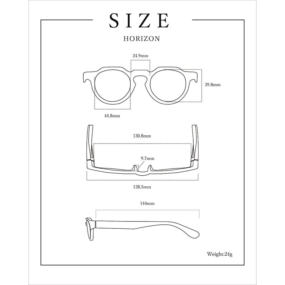 澄んだ視界へ 日常に溶け込むアイウェアを目指す『jugaad14/ジュガードフォーティーン』のモデル「HORIZON」。1950~60年代フランスのヴィンテージフレームをベースに再構築したモデルです。こちらはクリアタイプのフレームとなっており、曲線と直線でデザインされるリムは、太陽が昇る水平線をイメージ。クラシックになり過ぎないようブリッジ幅にはゆとりを持たせ、日本人の目鼻バランスにも相性良いデザインに仕上げています。 |