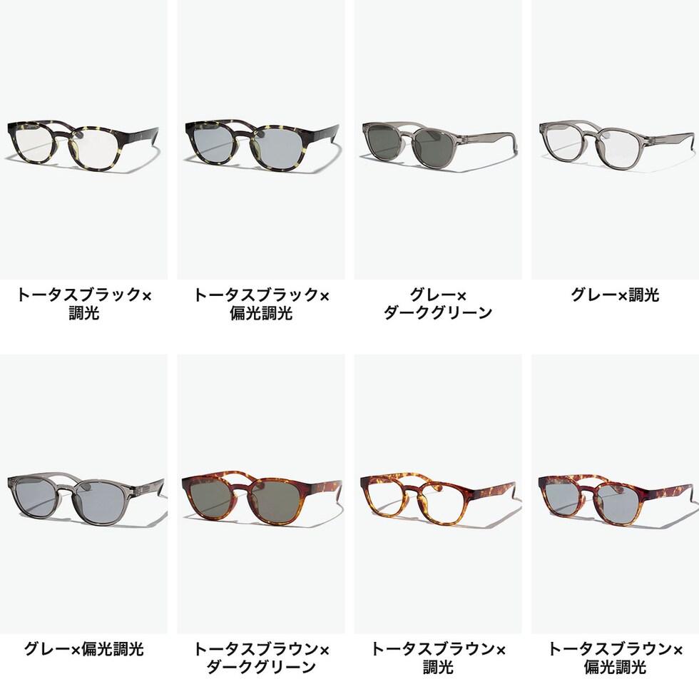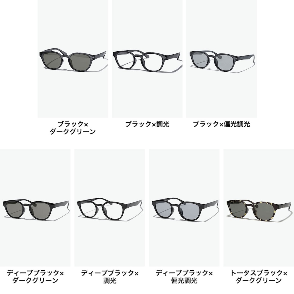 | カラー | ブラック×ダークグリーン(BLK)、ブラック×調光(BLK5)、ブラック×偏光調光(BLK7)、ディープブラック×ダークグリーン(DBLK)、ディープブラック×調光(DBLK5)、ディープブラック×偏光調光(DBLK7)、トータスブラック×ダークグリーン(MULTI)、トータスブラック×調光(MULTI5)、トータスブラック×偏光調光(MULTI7)、グレー×ダークグリーン(GRY)、グレー×調光(GRY5)、グレー×偏光調光(GRY7)、トータスブラウン×ダークグリーン(2MULTI)、トータスブラウン×調光(2MULTI5)、トータスブラウン×偏光調光(2MULTI7) |