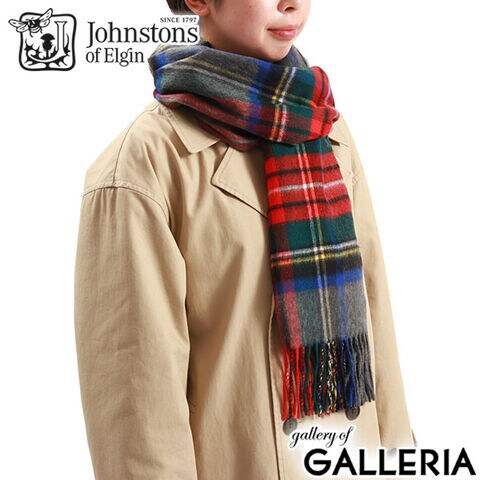 【日本正規品】ジョンストンズ オブ エルガン マフラー メンズ レディース チェックカシミヤ 100% かわいい Johnstons of Elgin ストール グレー ブランド 冬 シンプル スコットランド 中判チェックスカーフ WA000057