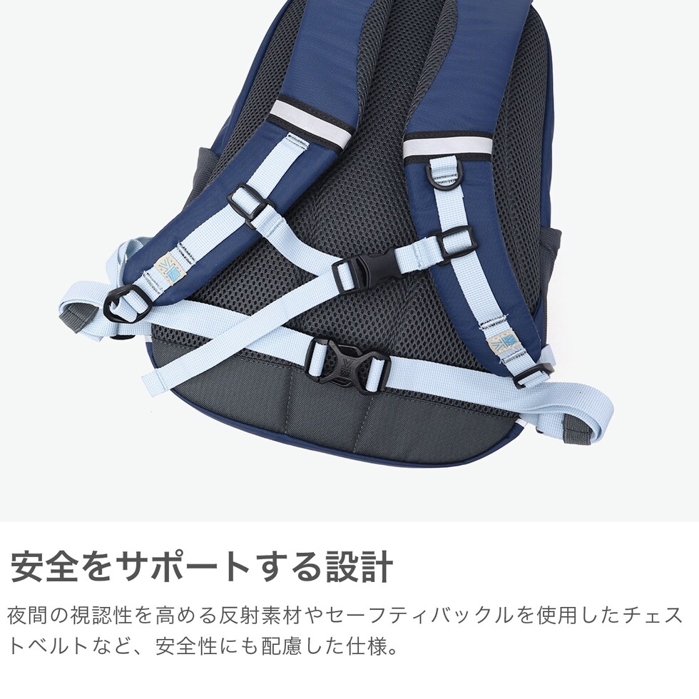 高機能リュック アウトドアやトレッキングに最適なキッズ向けの高機能リュック。夜間の視認性を高める反射素材やセーフティバックルを使用したチェストベルトなど、安全性にも配慮した仕様です。軽量で子供でも背負いやすく、通学から遊びまで、どんなシーンでも活躍します。 |