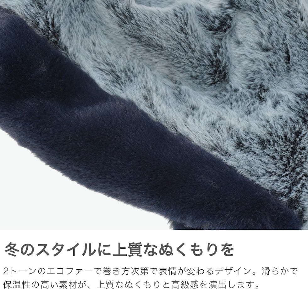 快適なつけ心地 たっぷりとしたボリューム感のスヌードです。ふわふわのフェイクファーが首元を暖かく包みます。バイカラーのデザインがおしゃれで、きれいめからカジュアルまで幅広いコーデにマッチ。通勤・通学時はもちろん、ギフトにもおすすめの冬の必須アイテムです。 |
