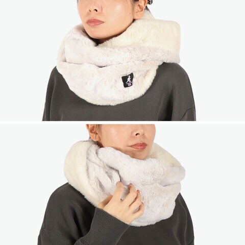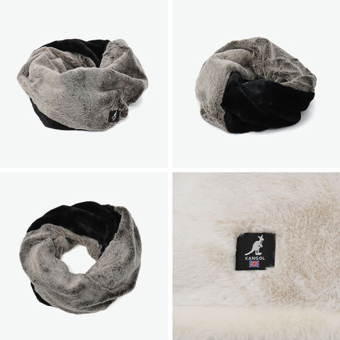 カンゴール マフラー レディース かわいい 白 KANGOL ブランド 黒 秋冬 ふわふわ もこもこ 可愛い 暖かい 防寒 防風 バイカラー スヌード ファー スノートップファー配色スヌード 251-TTKG883