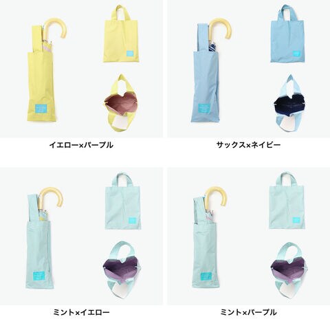 カラーイエロー×パープル(4)、サックス×ネイビー(1)、ミント×イエロー(2)、ミント×パープル(3)