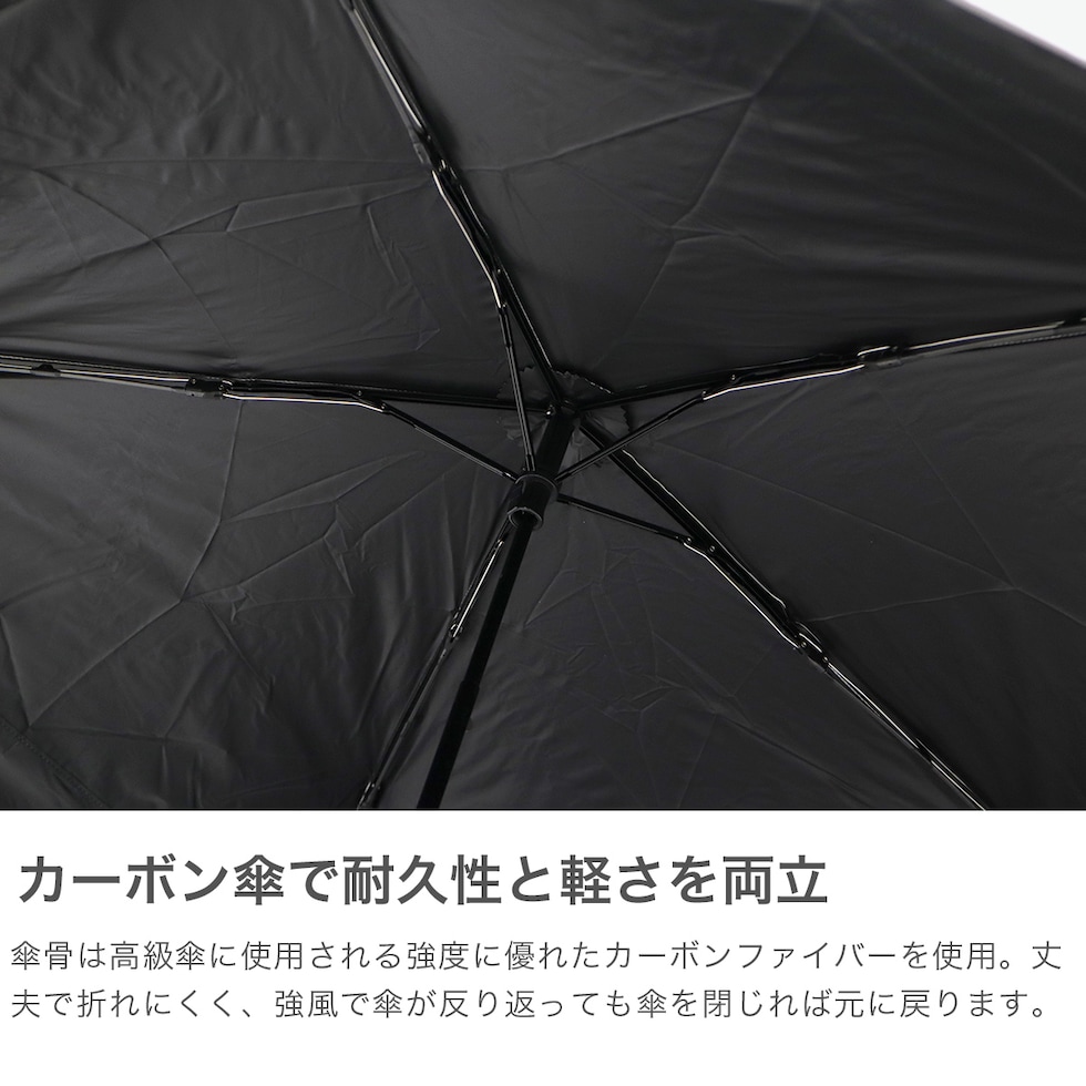 | 素材 | <生地> ポリエステル100%、ナイロン <中棒> アルミ <親骨> カーボン、アルミ <持ち手> ABS樹脂 |