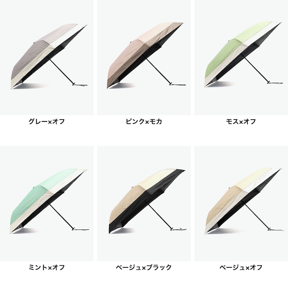 雨にも映える晴雨兼用傘 水滴を吸収することなく弾く高気密な生地を使用。優れた撥水力を維持しながら、軽くて丈夫な仕上がりです。太陽の日差しから完全に守ってくれる遮光率100%で、しっかりと肌をガード。抜群の遮熱効果を誇り、木陰にいるような涼しさを実現しています。上品で可愛らしい雰囲気のバイカラーは、明るい陽射しにはもちろん、曇りや雨の日にもよく映えます。 |