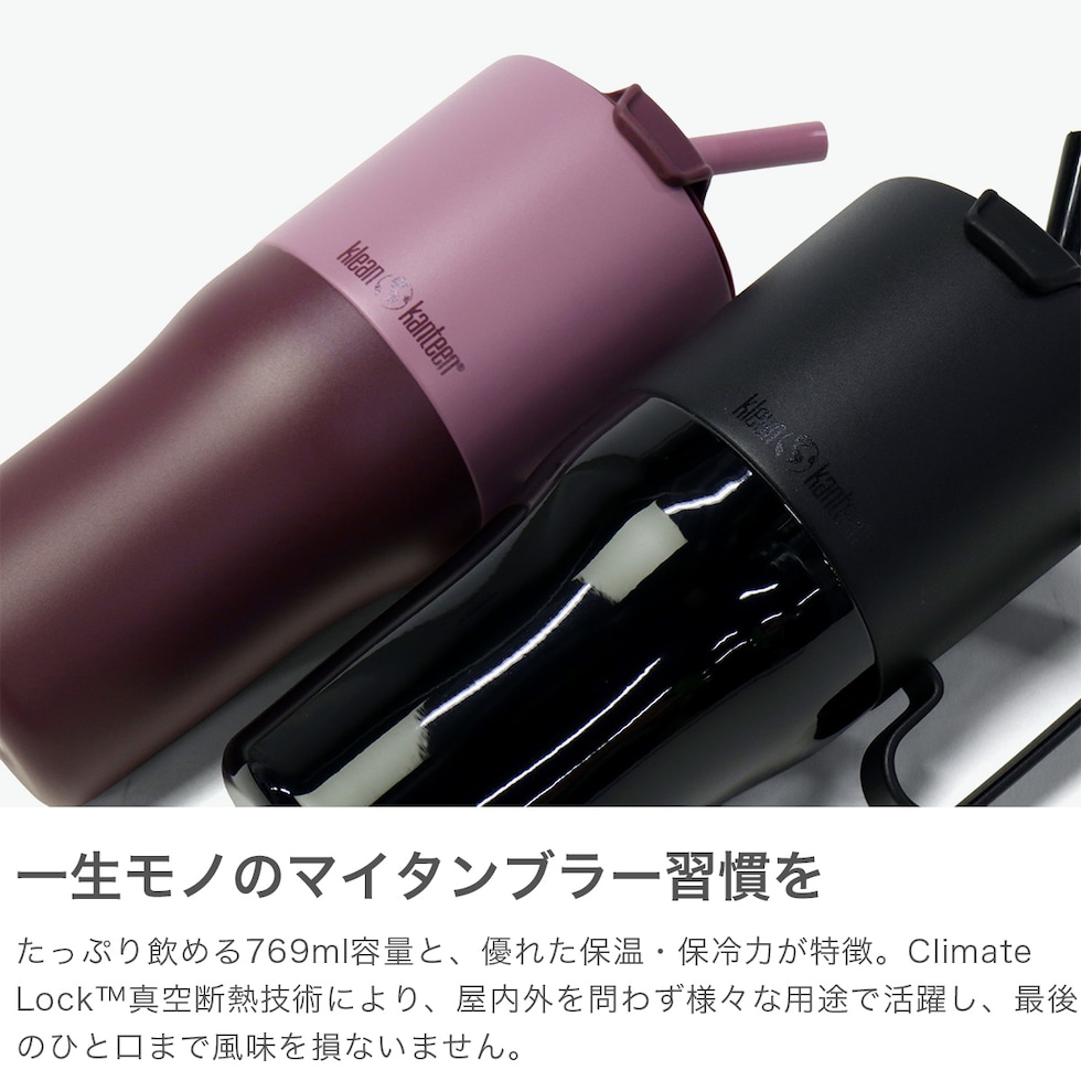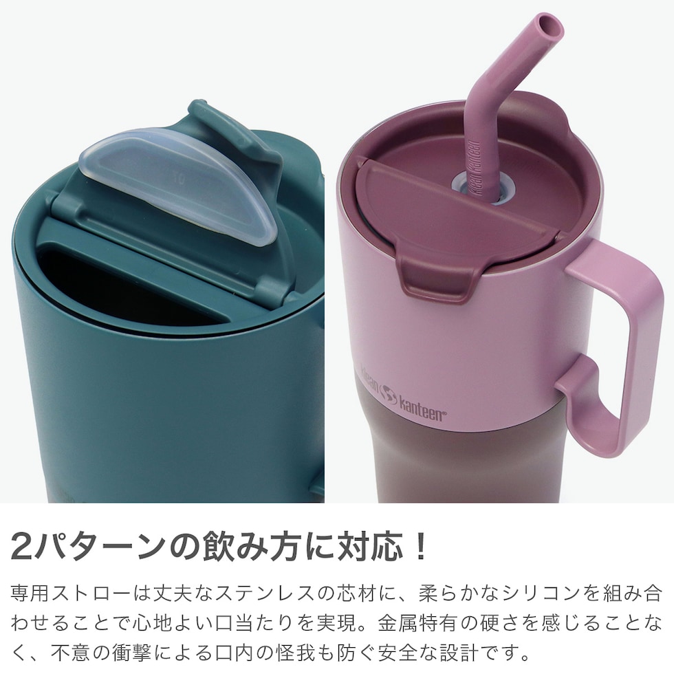 クリーンカンティーン タンブラー 蓋付き ストロー Klean Kanteen 保温 保冷 ハンドル 水筒 蓋 大容量 ステンレス製 真空断熱 傾けずに飲める ストロー蓋 769ml Reflect Collection 26oz