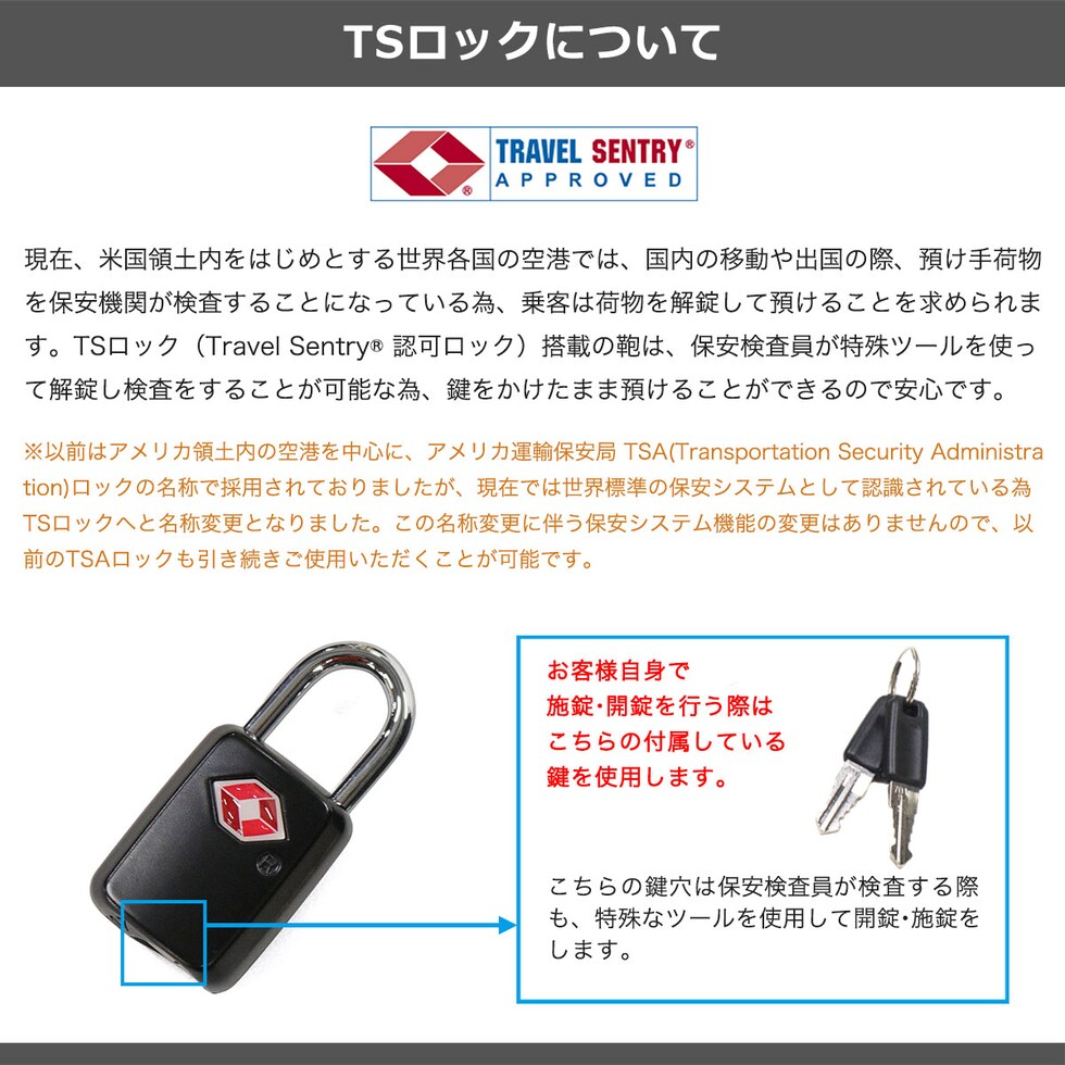 | TSAロック | あり ※TSAロックについて |