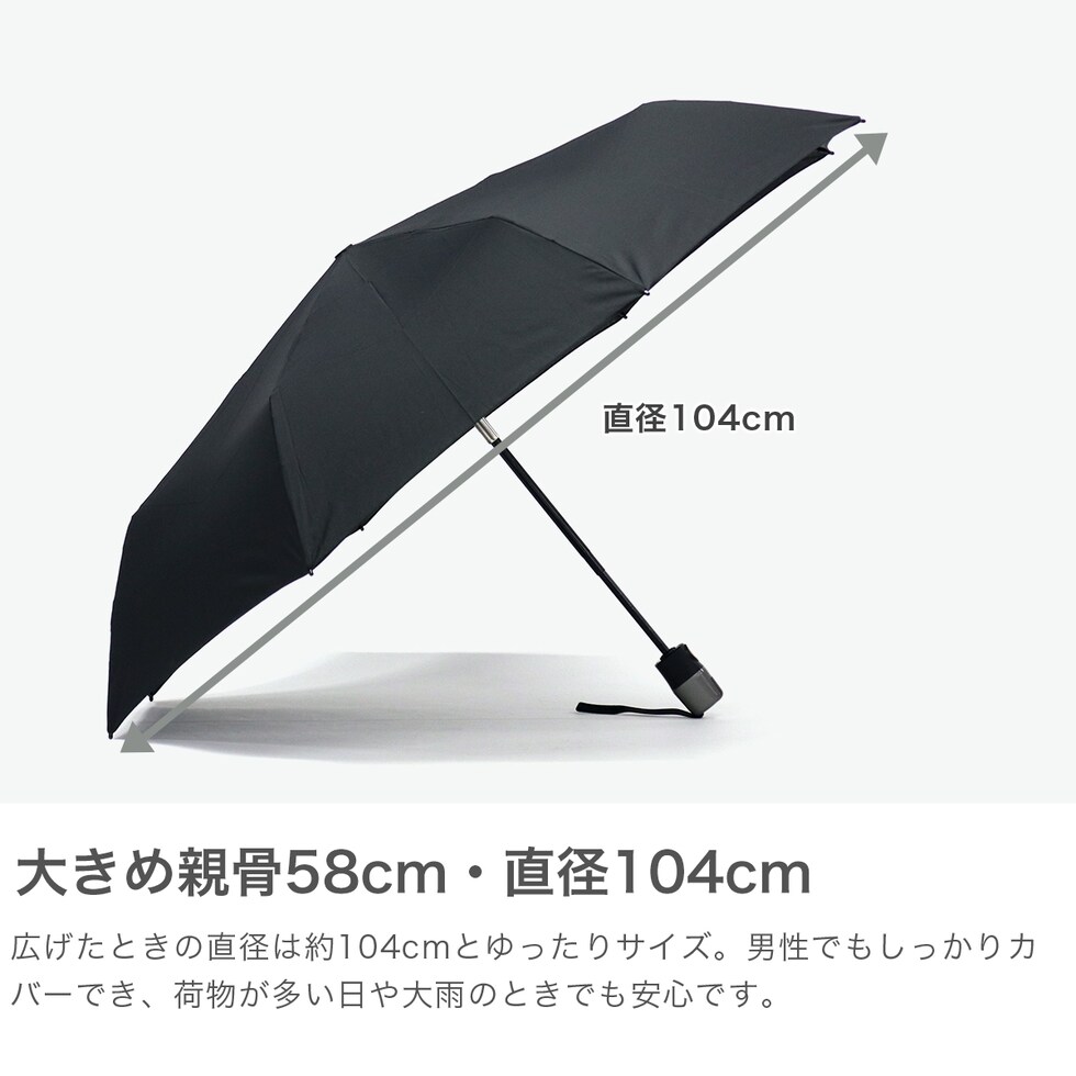 | 素材 | <生地> ポリエステル(撥水加工) <中棒> スチール <親骨> スチール、プラスチック、グラスファイバー <持ち手> ABS樹脂 |