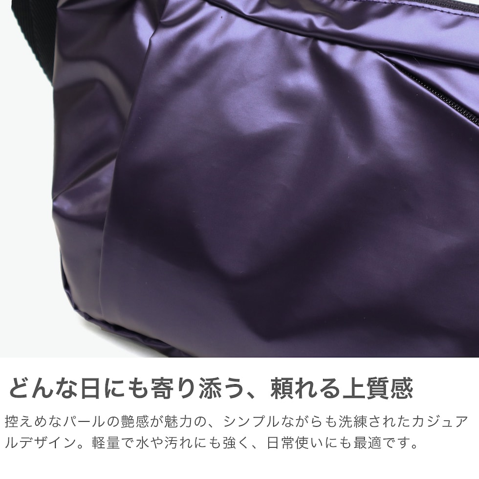 | 上品な光沢感が魅力 大人のショルダーバッグ 落ち着いたパール感のある素材を用いたカジュアルでシンプルな「ラポシュ/LaPoche」シリーズ。大人のリラックススタイルにフィットしコーディネートのアクセントとなるデザインのショルダーバッグです。軽量で、雨や汚れに強い素材を使用したデイリー使いしやすいアイテムとなっています。 |