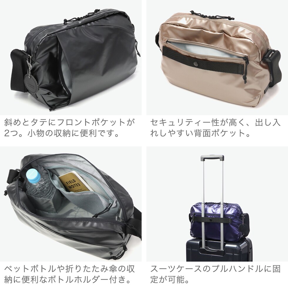| 仕様 | <外側> ポケット×3 <内側> ポケット×3 ボトルホルダー×1 キーフック×1 <付属品> チャーム×1 |