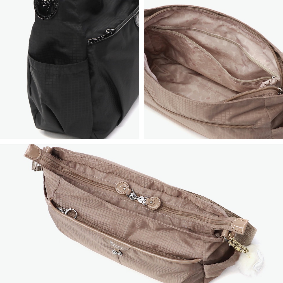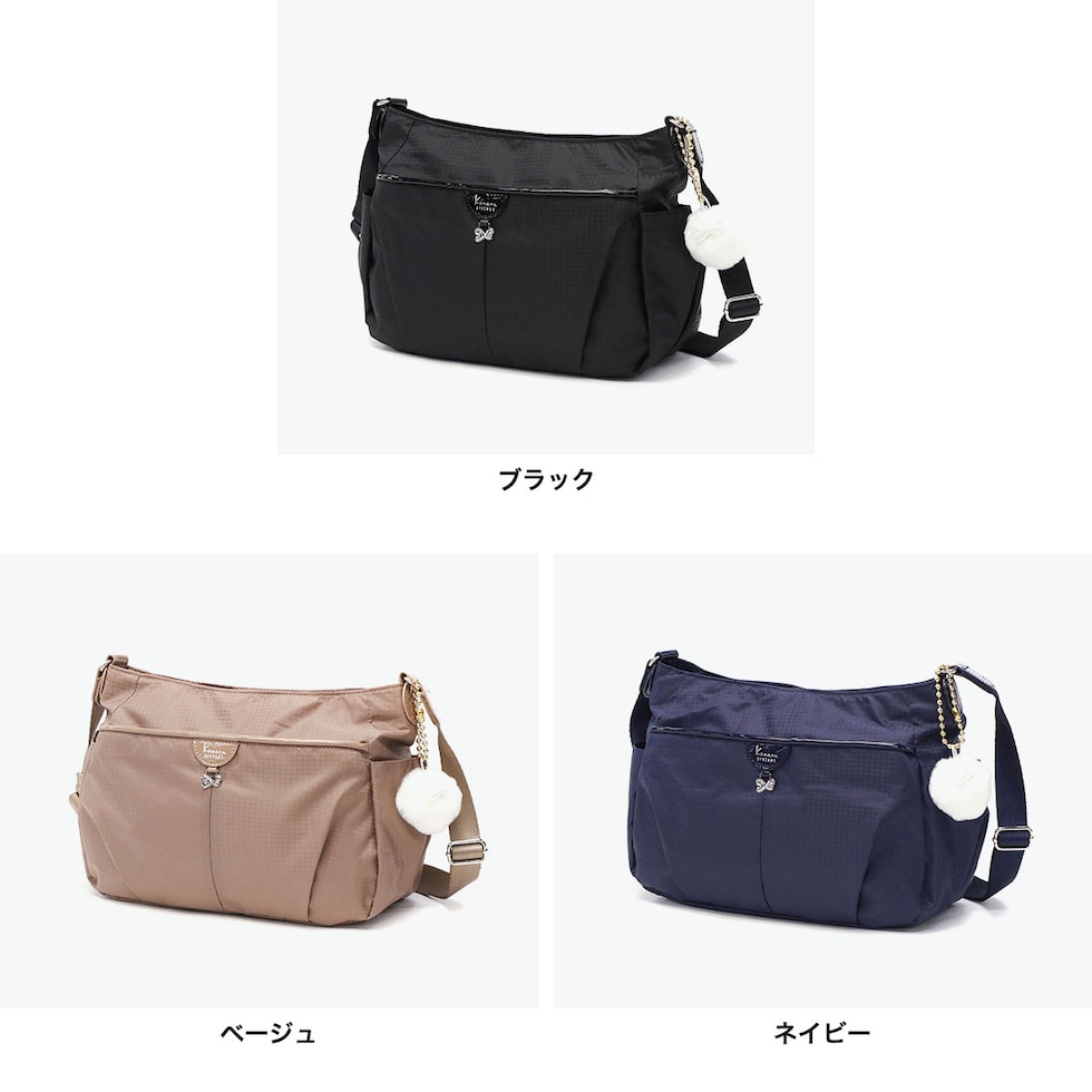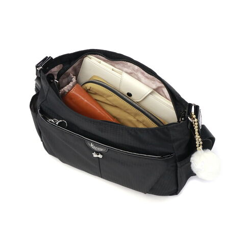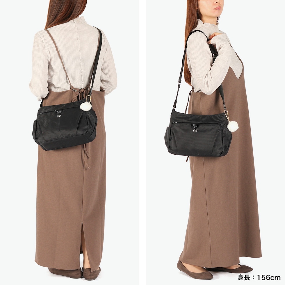 幅広く活躍するバッグ スタイリングのポイントにもなる少し丸みを帯びた可愛らしいデザインと、デイリーからトラベルまで幅広く活躍する機能性を兼ね備えた『シェリ』シリーズ。こちらは6L容量のショルダーバッグです。長財布やスマホなどの身の回りのものを余裕をもって収納できるサイズ感です。 |