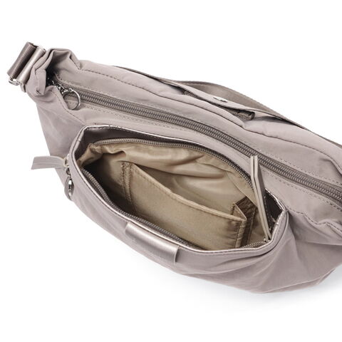トラベル・デイリー・ビジネスまでシーンレスに活躍する、ナチュラルテイストの軽量シリーズ『ECD-1』の横型ショルダーバッグ。マットでシャリ感のある素材にフェイクレザーをあしらい、カジュアルさの中に上品さをプラスしました。ムーンシルエットがさりげないアクセントに。スーツケースに固定できるセットアップベルト付きで、旅行シーンでも快適に使えます。シンプルでミニマルなデザインは、さまざまなシーンやコーディネートに自然になじみます。