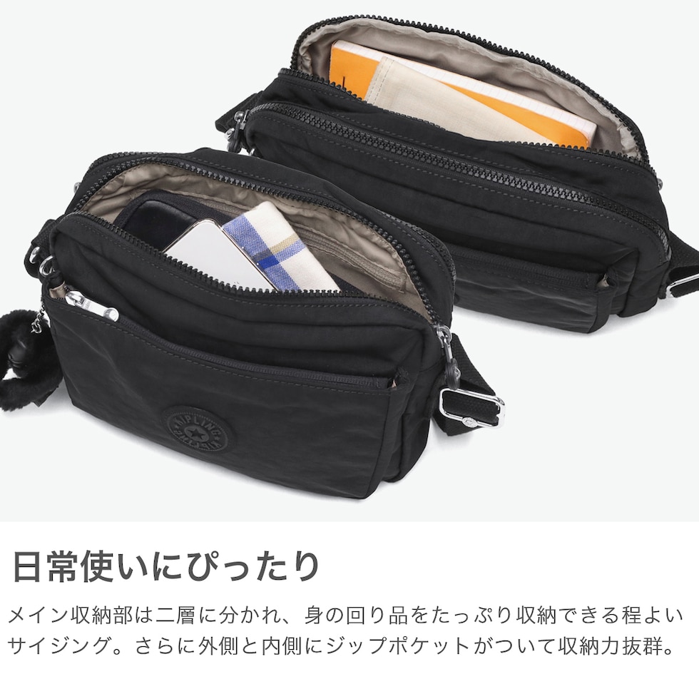 【正規取扱店】 キプリング ショルダーバッグ レディース Kipling バッグ 斜めがけ 小さめ 軽量 ナイロン 大人 上品 ブランド ミニショルダー クロスボディバッグ コンパクト 2層 A5 4L アバヌエム KI7076