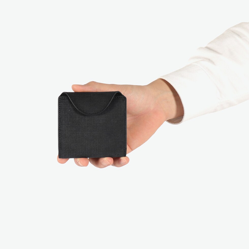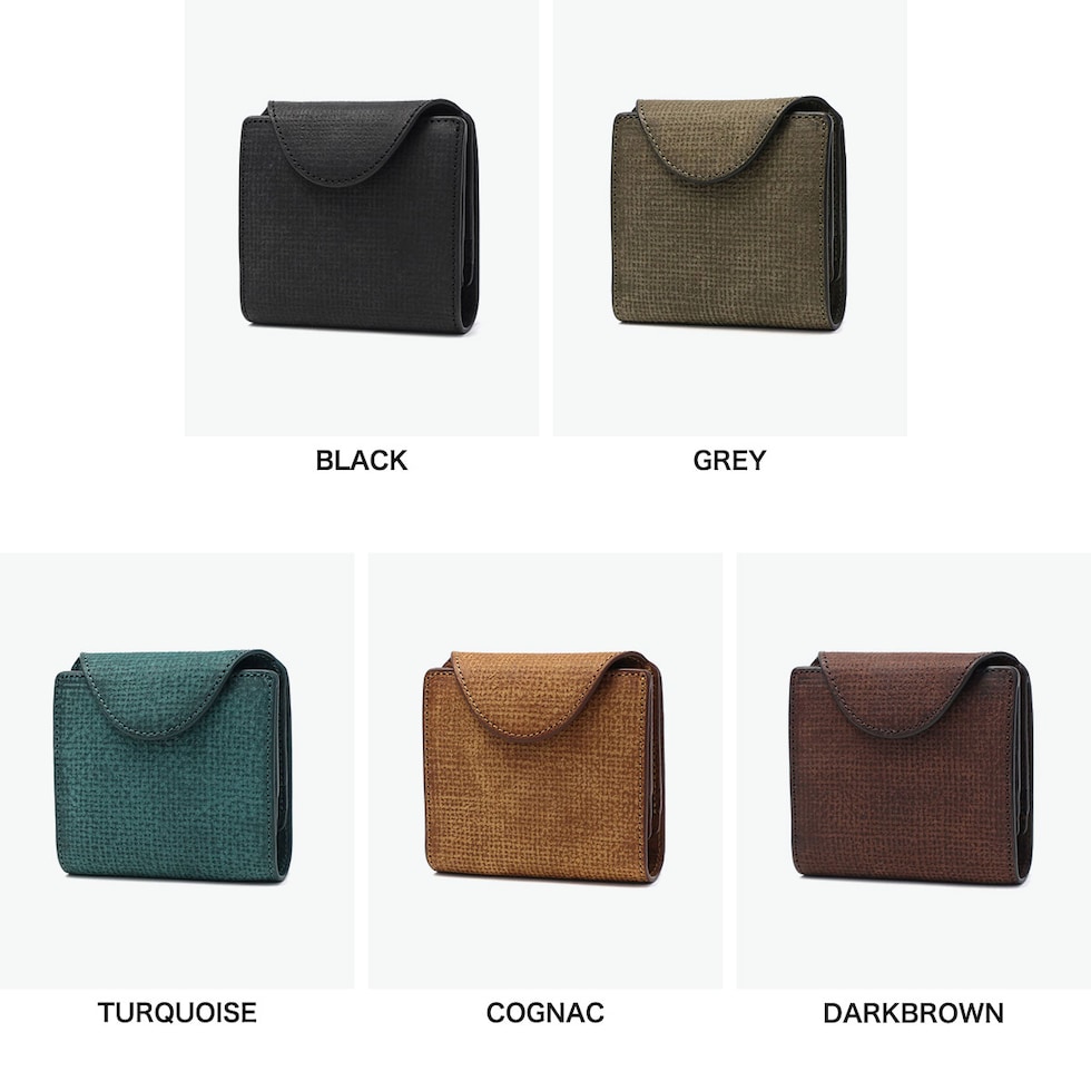| 手元で育つプエブロの艶 希少レザーの豊かな表情 紙幣・カード・小銭をひとつにまとめたオールインワン仕様のミニ財布。さりげないフラップがデザインのアクセントに。バダラッシカルロ社製プエブロレザーを使用し、麻袋によるグリッド状のエンボス加工を施した希少な「プエブロ テキスト」を採用。凹凸の濃淡が生む独特の経年変化を楽しめます。ミニマルなデザインと国内仕立ての上質感で、ギフトやペア使いにも最適な一品です。 |