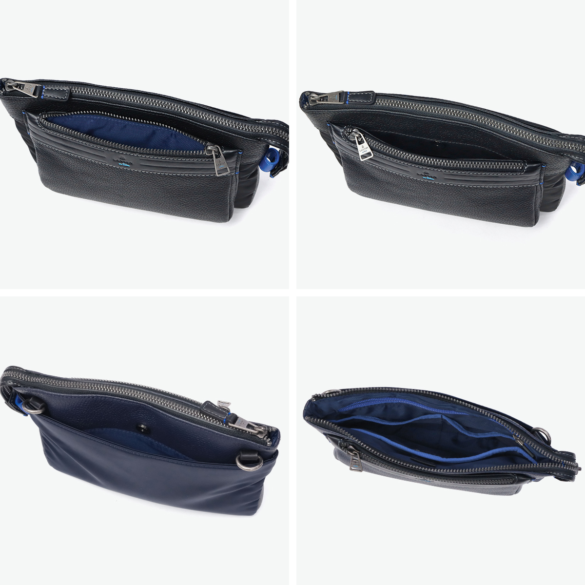 | 素材MIXで魅せる 大人の余裕と品格 レザーの分量感がポイントの上品なテイストのカジュアルシリーズ『レイト』のクラッチショルダーです。上質なシュリンクレザーに、スムースレザーと高級ナイロンを組み合わせた、ブランドらしい異素材ミックスが魅力です。あえてレザーを引き立て役に、生地を主役にした独自の素材使いも印象的。フロントにはファスナー付きとベタポケットの2層ポケットを備え、デザイン性と機能性を両立させた仕上がりです。 |
