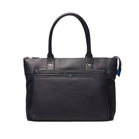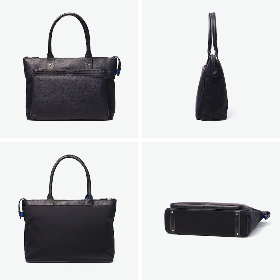 | 素材のバランスが魅力 上品カジュアルトート レザーの分量感がポイントの上品なテイストのカジュアルシリーズ『レイト』のトートバッグです。上質なシュリンクレザーに、スムースレザーと高級ナイロンを組み合わせた、ブランドらしい異素材ミックスが魅力です。あえてレザーを引き立て役に、生地を主役にした独自の素材使いも印象的。フロントにはファスナー付きとベタポケットの2層ポケットを備え、デザイン性と機能性を両立させた仕上がりです。 |