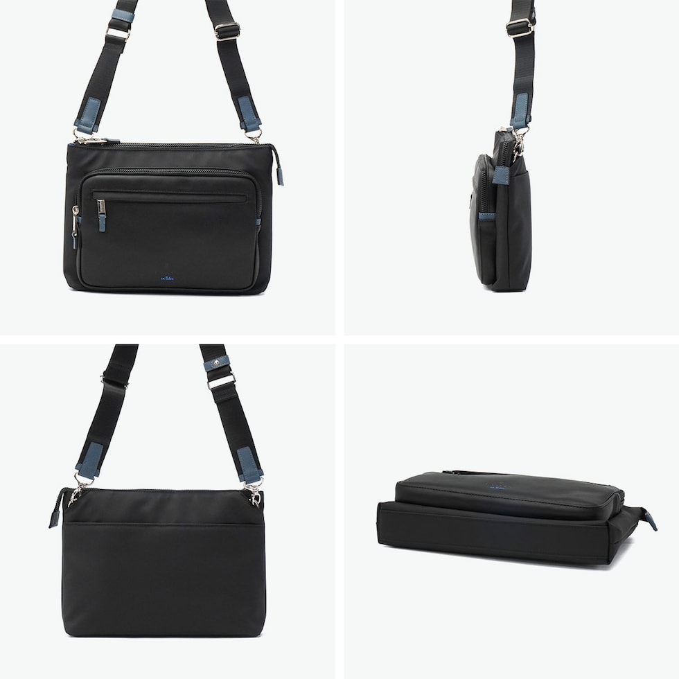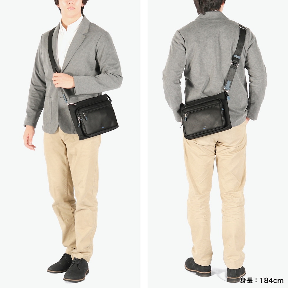 | 抜群の収納力を誇る B5ショルダーバッグ 3素材MIXでブランドらしい遊び心を表現したカジュアルバッグシリーズ『ドレッセ』のB5ショルダーバッグ。ブルーカラーのポイント使いが、シンプルながらもデザインにアクセントを加えています。上品さもある素材感で、カジュアル・ジャケパンどちらのスタイルにもぴったり。コンパクトながらも、貴重品や日用品、ペットボトルまで収まるちょうど良いサイズ感がポイントです。 |