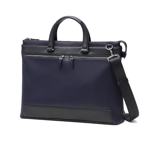 | 立体ストライプが 大人の余裕を演出 ラバー調の凹凸が特徴的なPVC素材を使用した『バンプ』シリーズのビジネスバッグです。耐水性・耐摩耗性に優れた高強度素材で、機能性とデザイン性を両立。立体感のあるストライプ柄が都会的なビジカジスタイルを引き立てます。B4対応サイズでしっかり荷物が入り、PC収納や多彩なポケットを装備。手持ちと肩がけの2WAY仕様で、通勤から出張までスマートに活躍します。 |