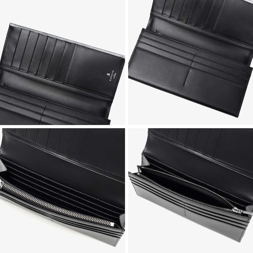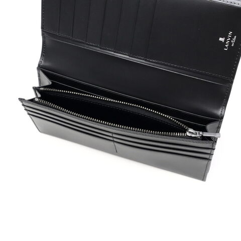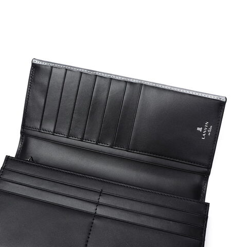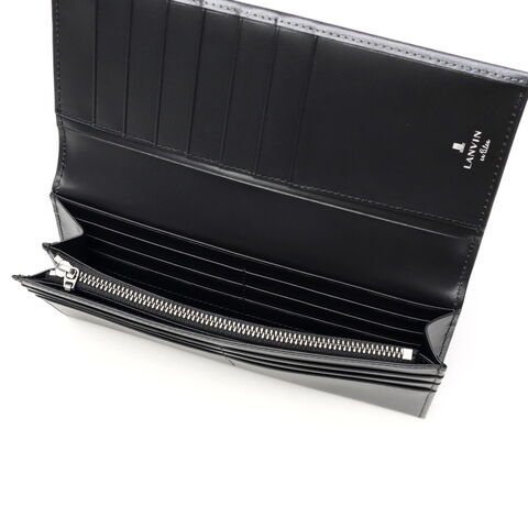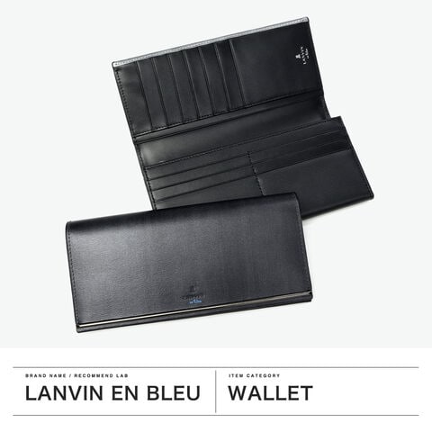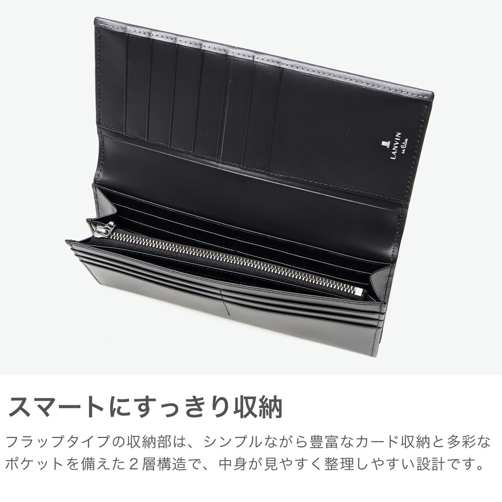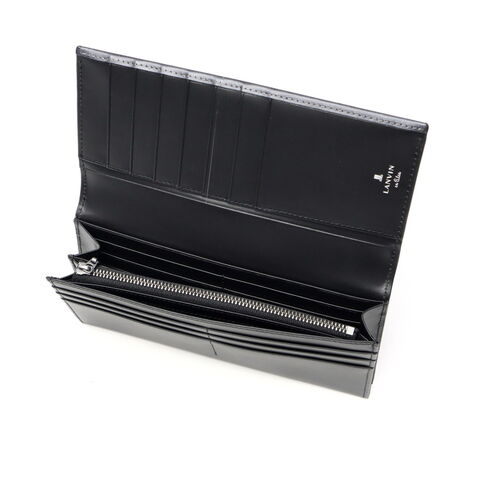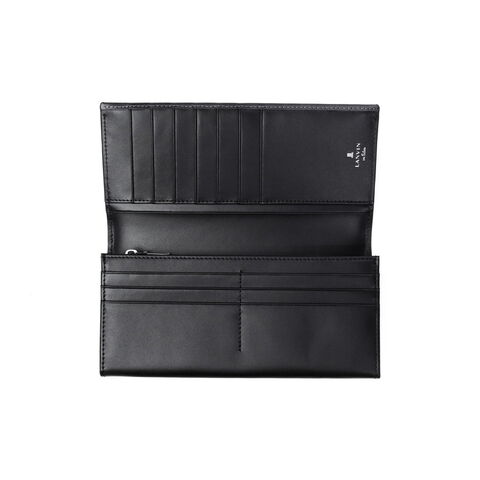 ランバン オン ブルー 長財布 メンズ かぶせ 薄型 LANVIN en Bleu 薄型財布 本革 ブランド レザー 牛革 革 財布 小銭入れあり ロングウォレット おしゃれ 軽量 ガンメタル シンプル 大人 レノア 518614