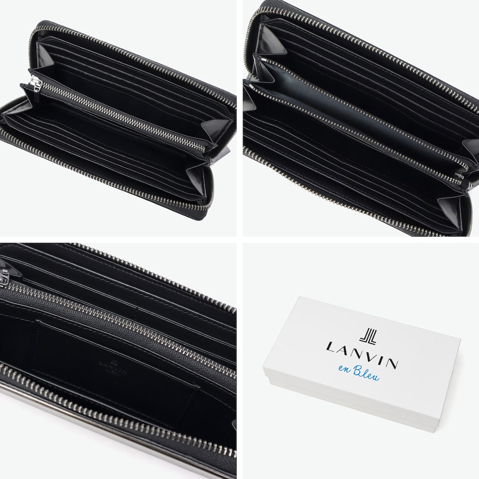 ランバン オン ブルー 長財布 メンズ ラウンドファスナー LANVIN en Bleu 本革 ブランド レザー 牛革 革 財布 小銭入れあり ロングウォレット おしゃれ 軽量 ガンメタル シンプル 大人 レノア 518615