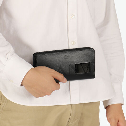 存在感際立つ長財布 LANVIN en Bleuの楽しさを表現した小物シリーズ『ディアブロ』の長財布。立体的な型押しロゴと金具プレートと繋がっているように見えるデザインが印象的。ロゴはさらに背面へと回り込み、存在感とデザイン性を際立たせています。素材には細かな型押しが施されているため、傷がつきにくいのも魅力です。 |