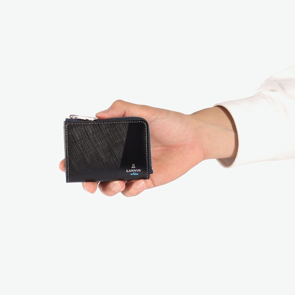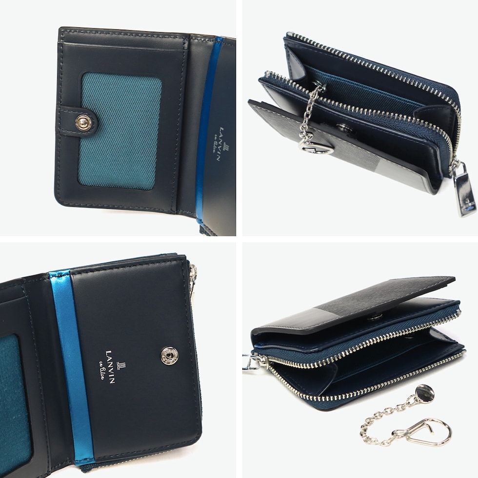 | ミニマルに持ち歩く 多機能パスケース シックで上品な艶感が魅力のガラスレザーに部分的にサフィアーノ調のエンボス加工を施し、アパレル等で多用されるLANVIN en Bleuらしい切り替えを表現した『パーシャル』シリーズのパスケースです。光をイメージしたメタリックブルーカラーを内装の一部分に使用することで、スタイリッシュで洗練されたデザインに仕上げています。二つ折りのコンパクトなフォルムながら、小銭入れやキーチェーンを備え、使いやすさと収納力を兼備。軽やかで上質な佇まいは、日常をスマートに彩ります。 |