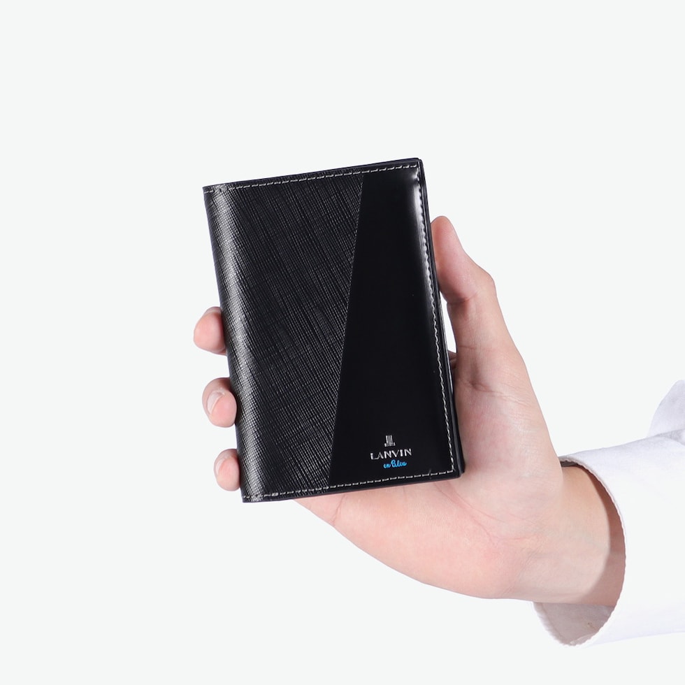 | 異なる艶感が日常を彩る 上質レザーウォレット シックで上品な艶感が魅力のガラスレザーに部分的にサフィアーノ調のエンボス加工を施し、アパレル等で多用されるLANVIN en Bleuらしい切り替えを表現した『パーシャル』シリーズの二つ折り財布です。光をイメージしたメタリックブルーカラーを内装の一部分に使用することで、スタイリッシュで洗練されたデザインに仕上げています。大きく開いて見やすい小銭入れや豊富なカードポケットなど、機能性も充実。手に馴染むコンパクトなサイズ感で、日常使いにぴったりのアイテムです。 |
