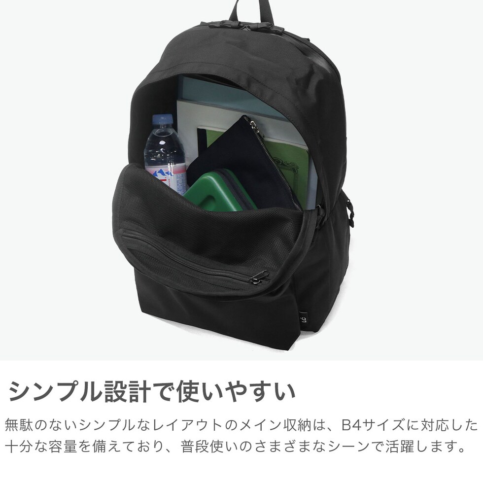 日常使いに最適なサイズ感のデイパック。素材には840デニールのジュニア・バリスティックナイロンを採用し、耐摩耗性・耐突刺性・耐引裂性に優れたタフな素材ながら、繊細かつ現代的な印象に仕上げています。ビジネスにもカジュアルにも合わせやすいシンプルなデザインに充実した収納部を備え、使い勝手と機能性を両立したバックパックです。